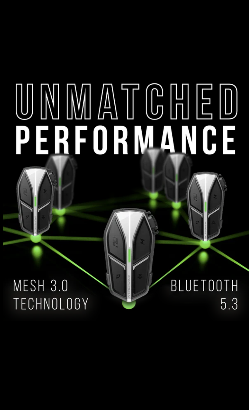 4cestný Bluetooth 5.3 interkom je kompatibilní se Sena, Cardo a Midland a nabízí stabilní připojení i se smartphony a TFT displejem.