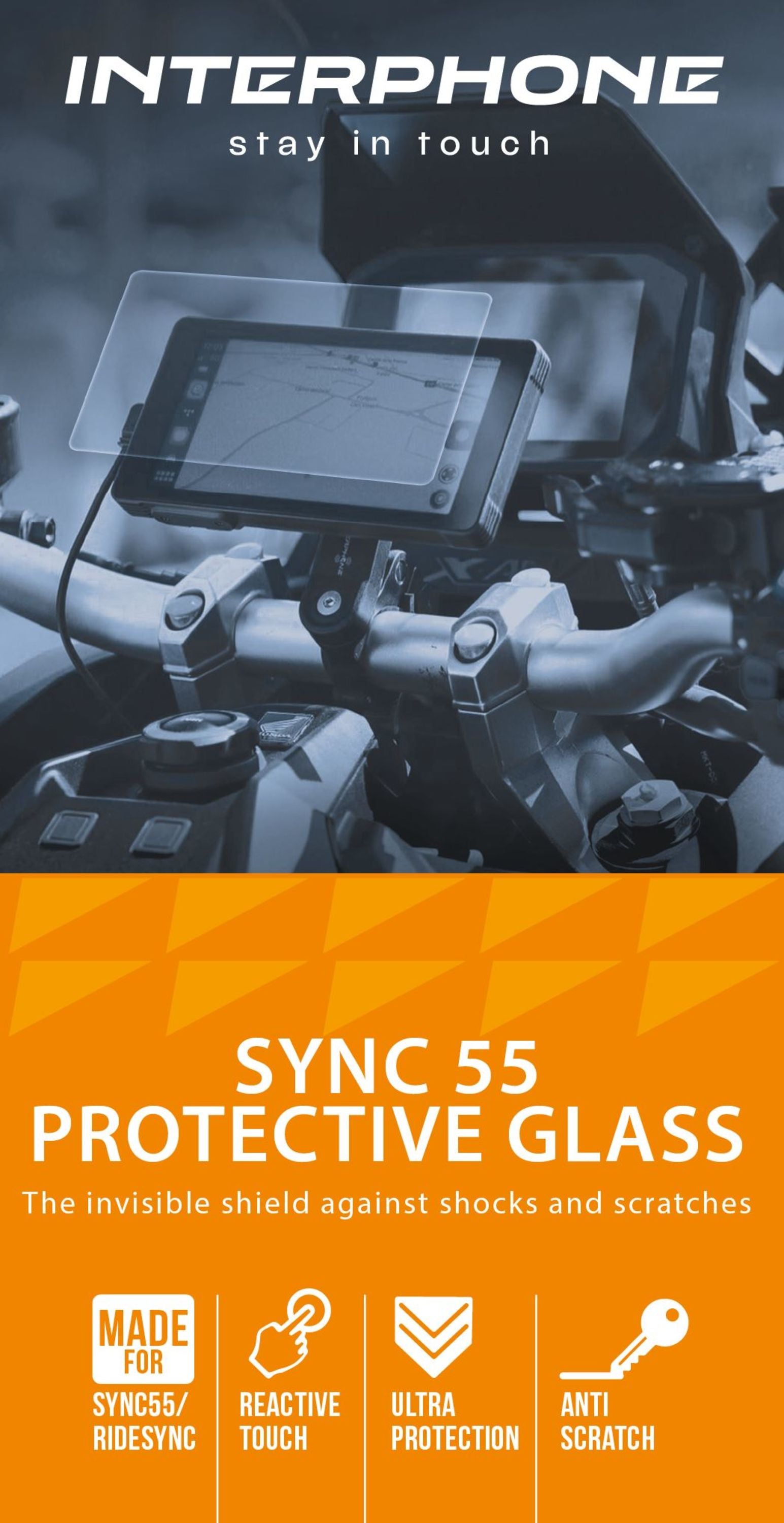 Interphone displej RideSync – Zrcadlení na motorku s ochranným sklem