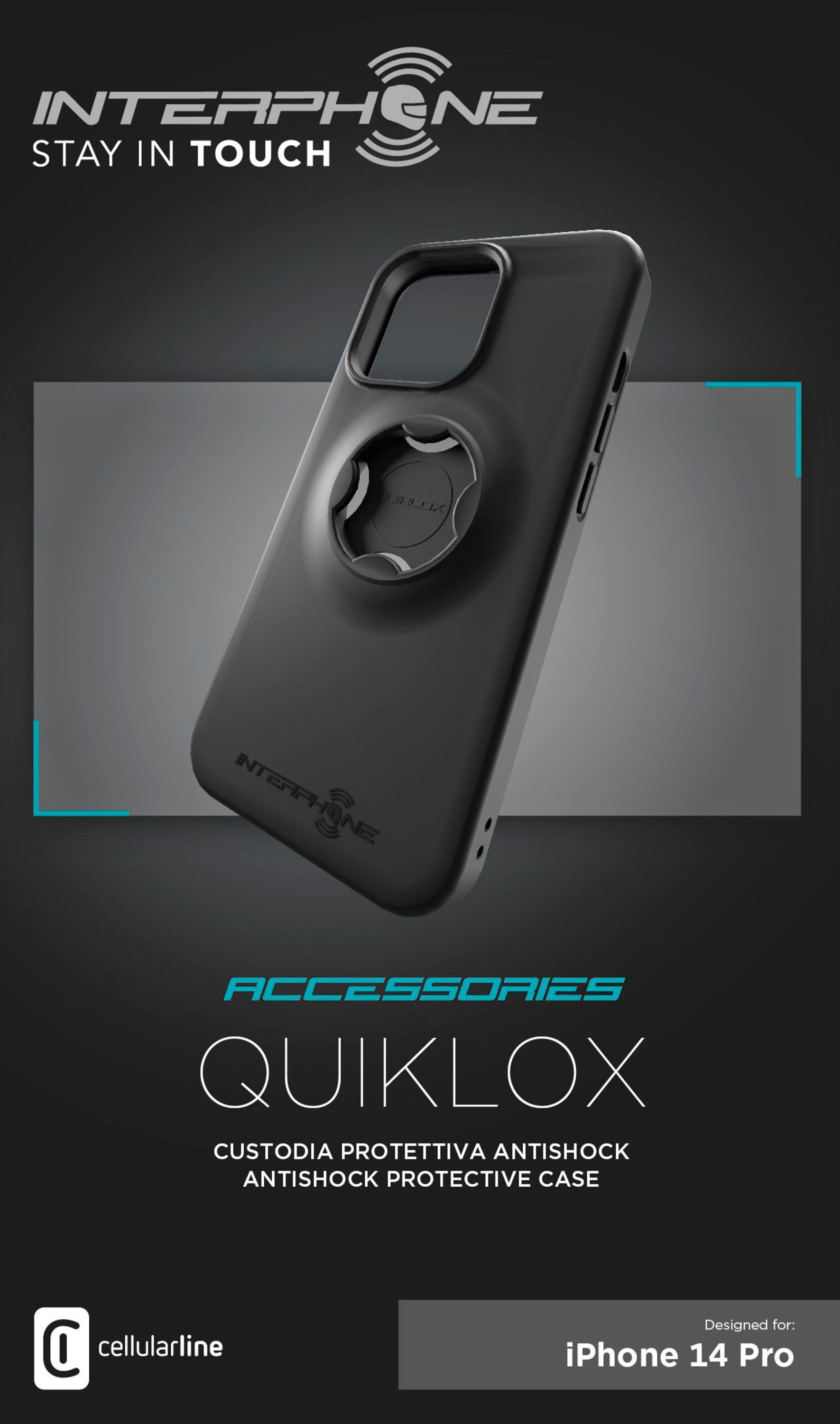 Speciální kryt Interphone Quiklox je určený pro všechny motorkáře využívající držáky s Quiklox systémem. Perfektně ochrání váš telefon během jízdy i při každodenním nošení. Je vyrobený přesně na míru pro daný typ telefonu a kryje boky i záda zařízení. Odolný materiál krytu vydrží veškeré pády i škrábance. Díky rychloupínacímu systému lze telefon v krytu během okamžiku připevnit k držáku Quiklox na řídítkách nebo zrcátku motocyklu a vyrazit na trasu. Po skončení jízdy stejně jednoduše telefon odepnete. Všechny ovládací tlačítka jsou plně přístupná a telefon lze pohodlně ovládat během jízdy. Pro naprosté bezpečí telefonu můžete zajistit kryt k držáku i pomocí jistícího lanka v balení.