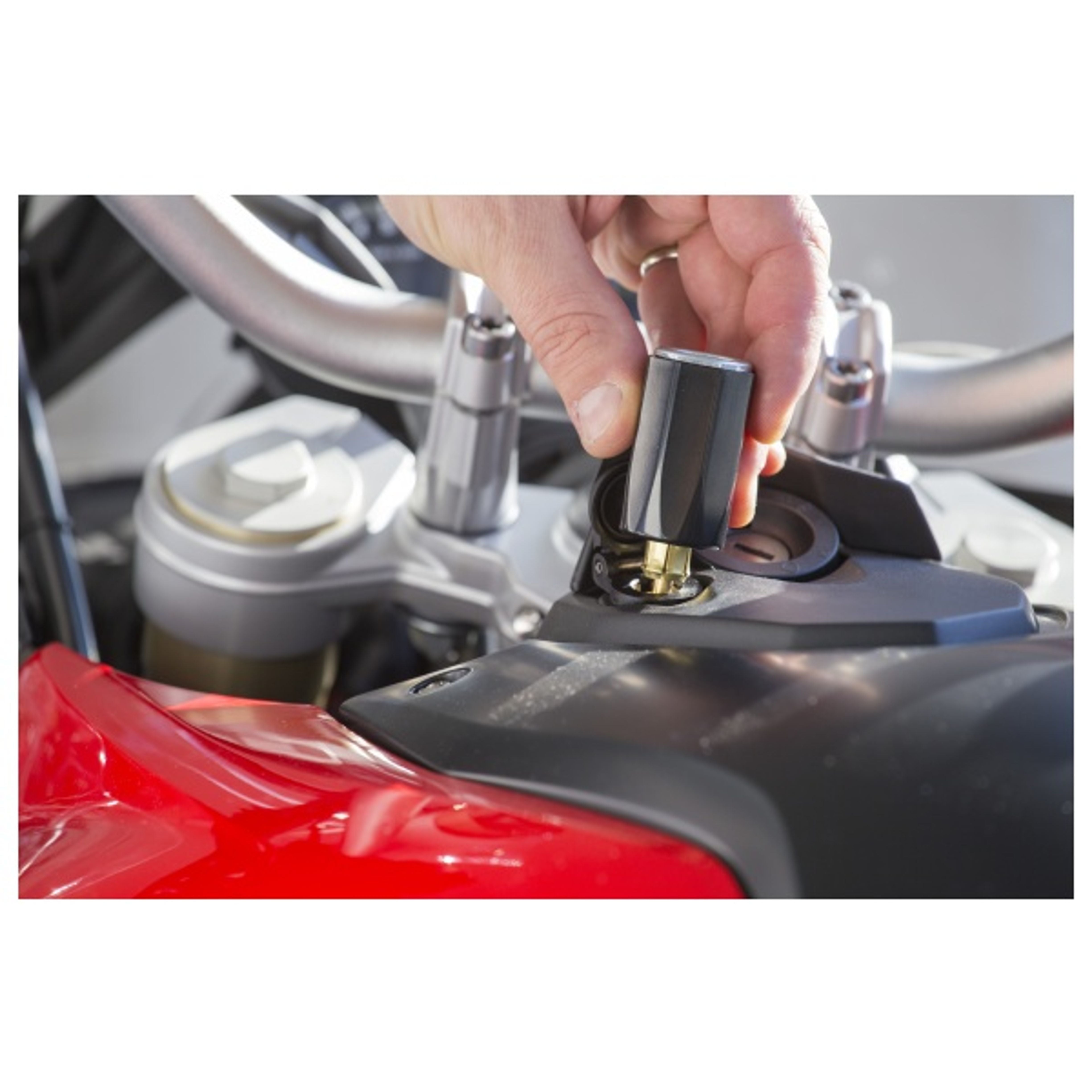 12 V adaptér z DIN konektoru na CL zásuvku pro napájení autonabíječek. Je malý, praktický a bez kabelu. Rozměry 7 x 2,4 cm.
