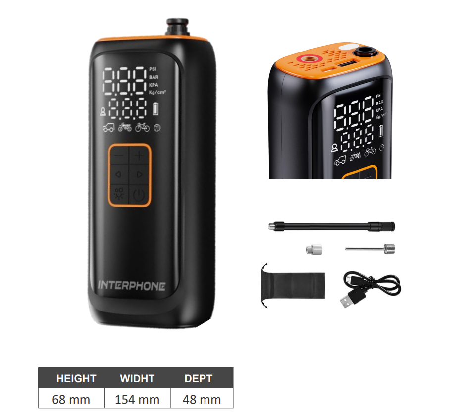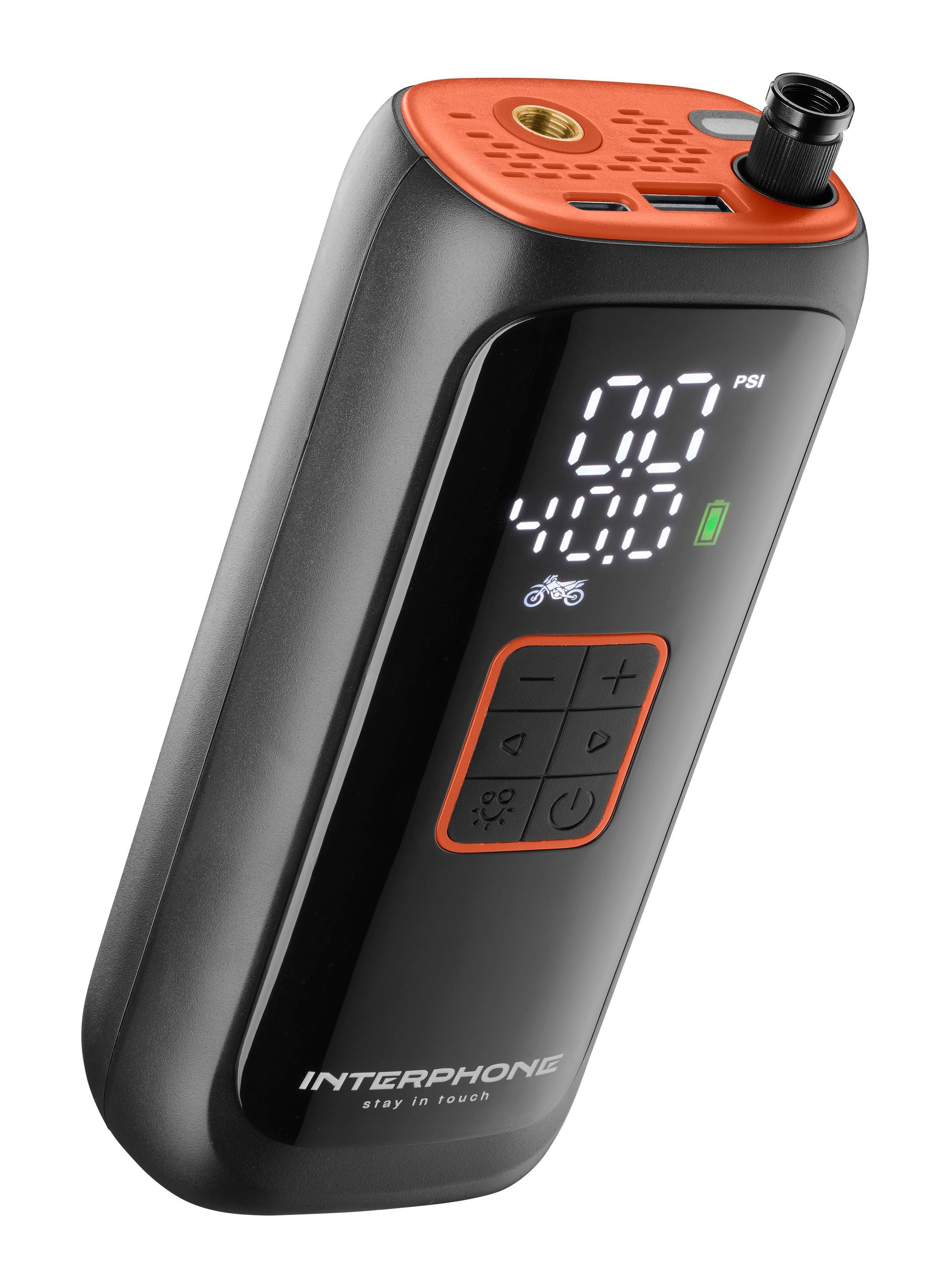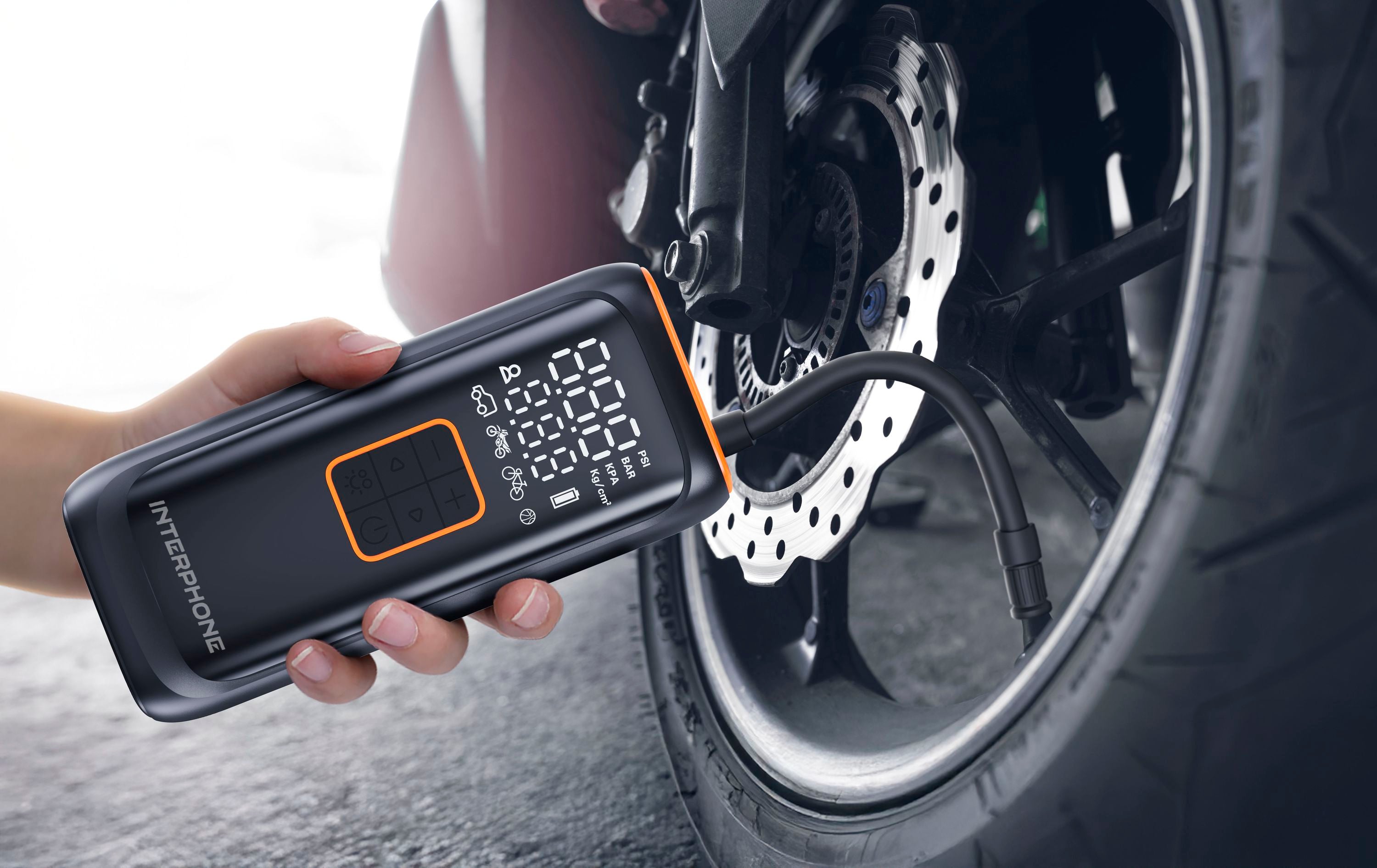 Silný a rýchly: Nafúkne až 4 motocyklové pneumatiky naraz na jedno nabitie. Šikovný a praktický dizajn: Je vybavený integrovanou hadicou, spolu s displejom na sledovanie tlaku. Pokročilé bezpečnostné funkcie automatického zastavenia pri dosiahnutí požadovaného tlaku. Integrované LED svetlo Batéria s dlhou výdržou s funkciou powerbanky