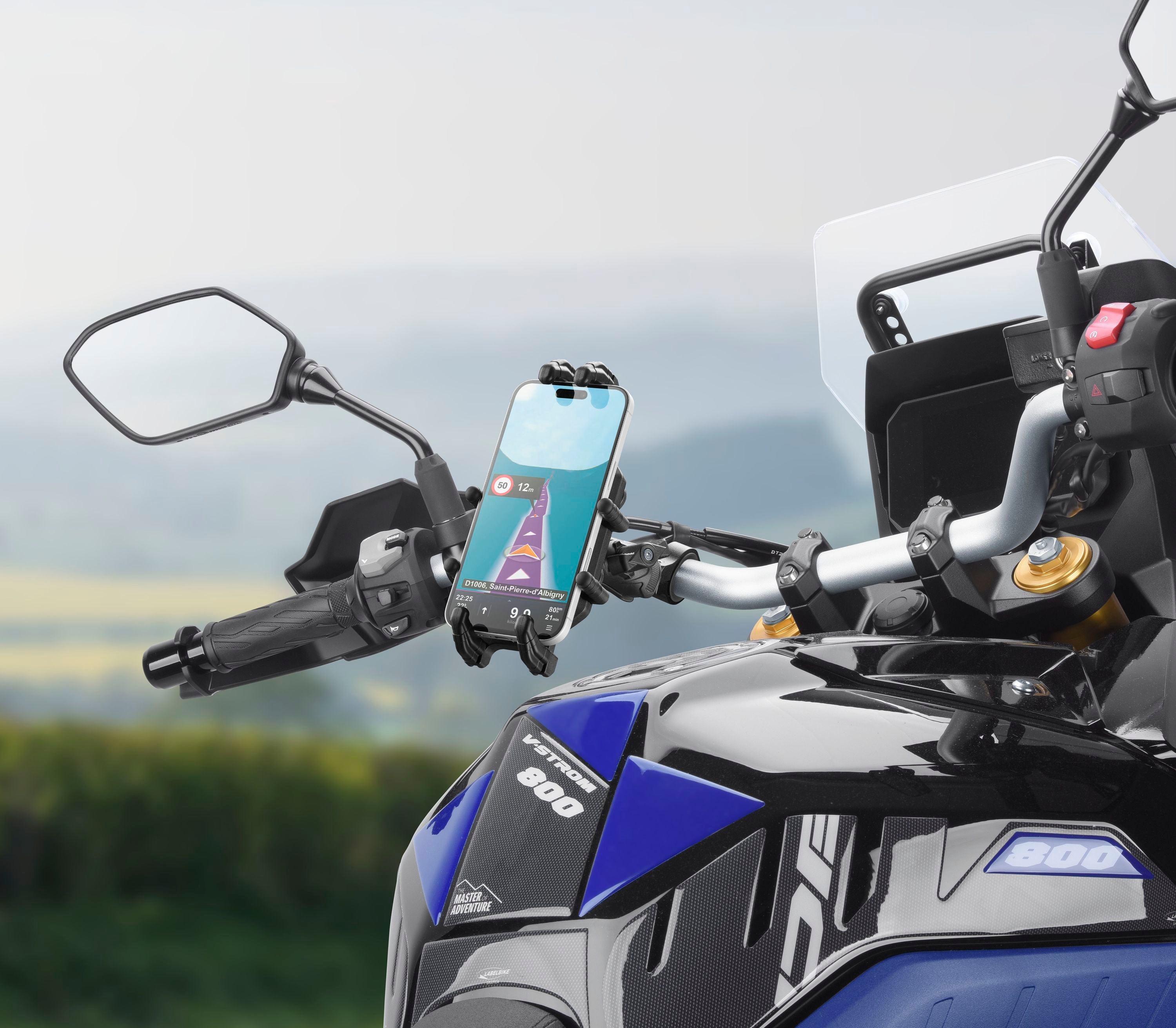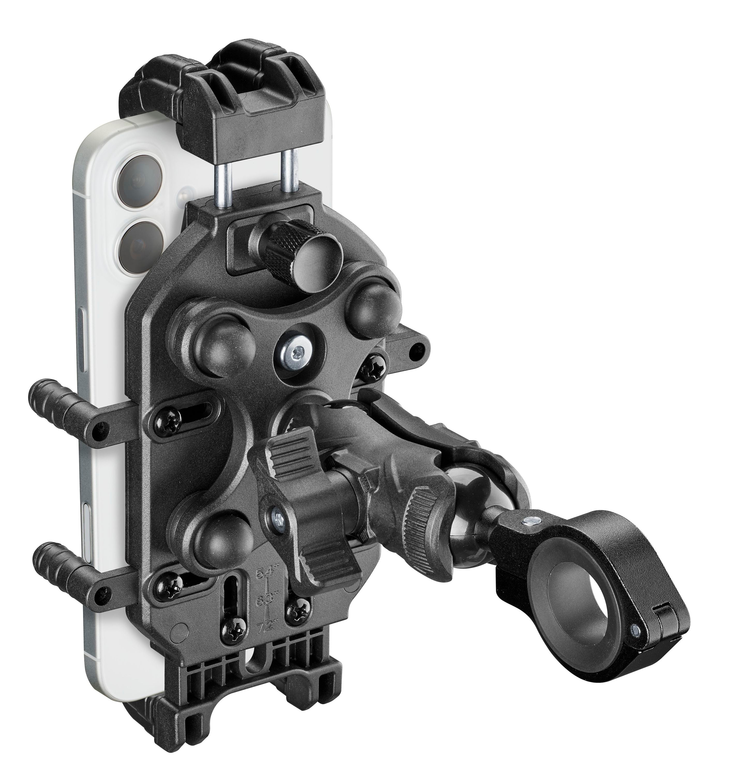 Vhodné pre akýkoľvek typ smartfónu vrátane odolných pracovných telefónov. Vďaka 8 kontaktným bodom zostane telefón vždy na mieste av bezpečí. Vďaka prémiovému antivibračnému modulu sa výrazne znížia škodlivé vibrácie prenášané na telefón. Pohyblivé horné upevňovacie oká pre jedinečne ľahké upevnenie. Vďaka kĺbovému ramenu je možné robustný držiak telefónu namontovať v ľubovoľnej polohe riadidiel a správne ho orientovať. Upevnenie je zaistené pomocou špeciálneho držiaka. Vhodné pre riadidlá s priemerom 22 až 30 mm.