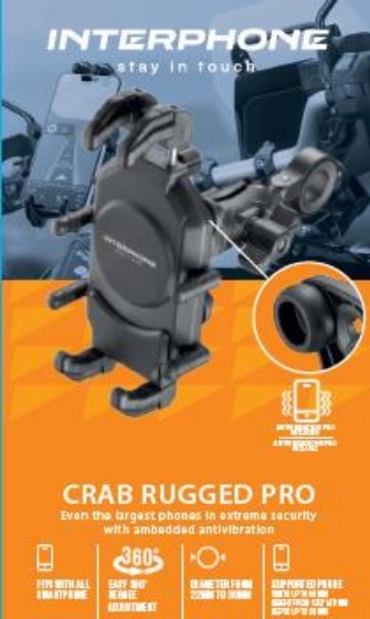 Univerzálny držiak na odolné mobilné telefóny Interphone Crab Rugged Pro s antivibráciou